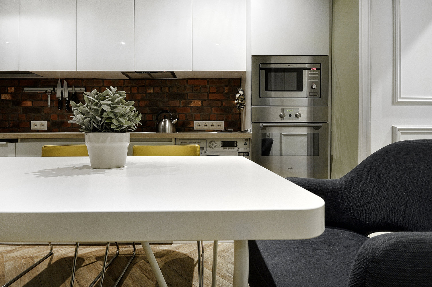 Фотография:  в стиле , Кухня и столовая, Скандинавский, Белый, Проект недели, Зеленый, Бежевый, Пермь, Артемий Саранин, новостройка – фото на INMYROOM