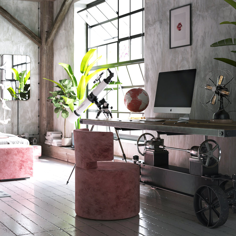Бетонные стены и розовая мебель: спальня в стиле лофт5,0