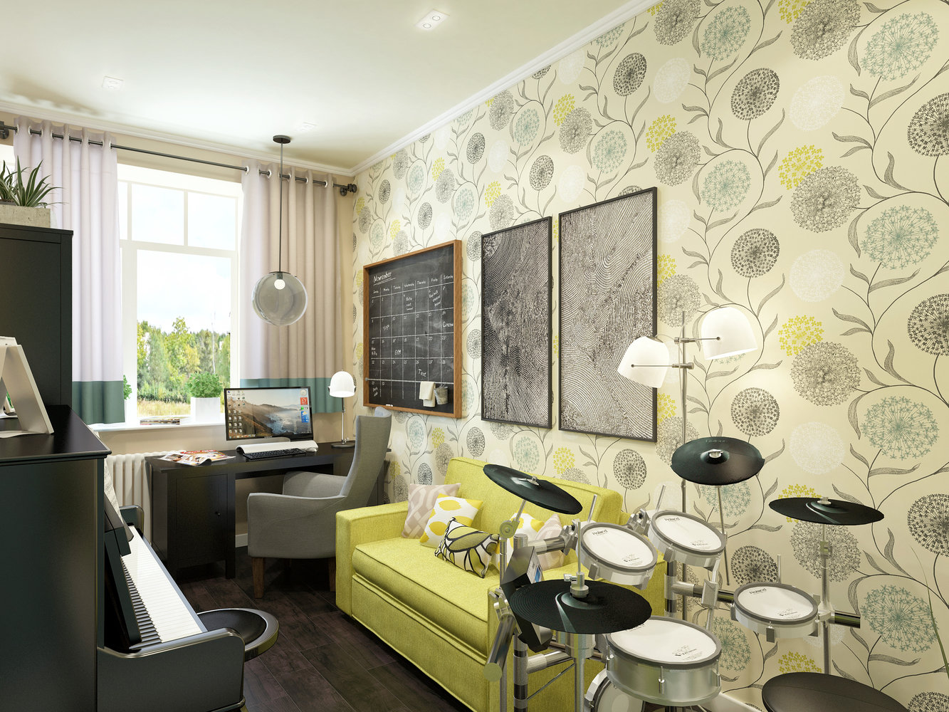 Фотография: Кабинет в стиле Современный, Эклектика, Квартира, Проект недели, ИКЕА, двушка, Benjamin Moore, Московская область, Little Greenе, Татьяна Безверхая, мебель из ИКЕА – фото на INMYROOM