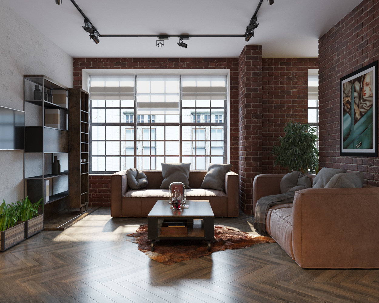 Студия со стеклянной перегородкой и гардеробной в ваннойГамма