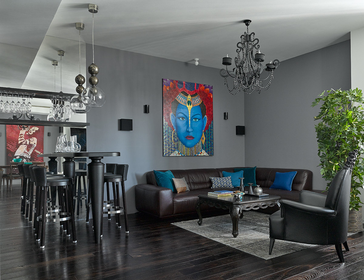 Монохромная квартира со смелыми акцентами