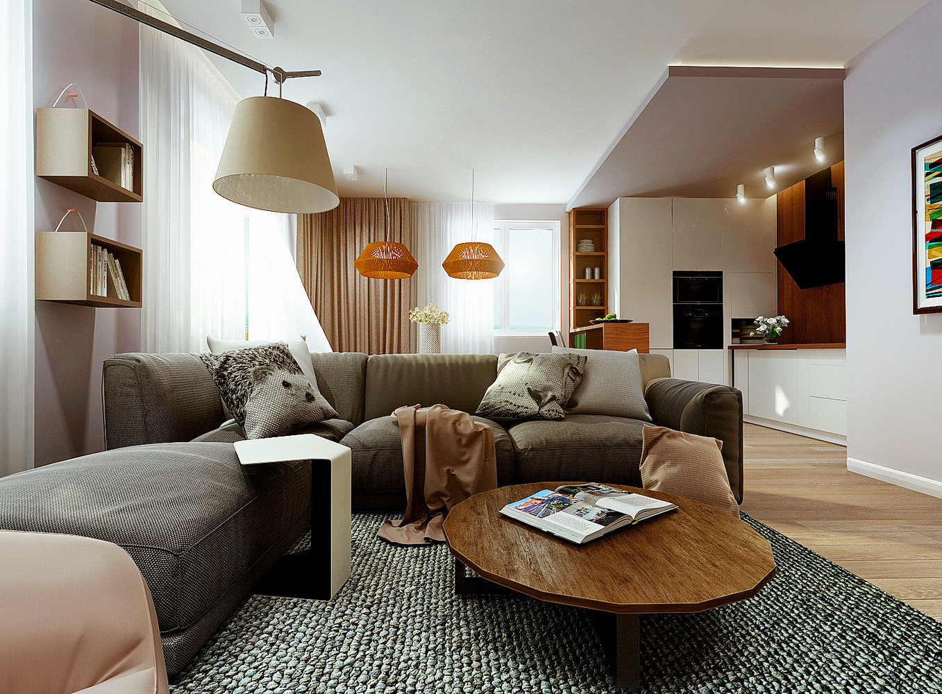 Фотография: Гостиная в стиле Современный, Дом, Проект недели, Дом и дача, мансарда в загородном доме, Самара, Ольга Агапонова, Artek Design Studio, ванная комната в мансарде, деревянная лестница, гардеробная с окном – фото на INMYROOM