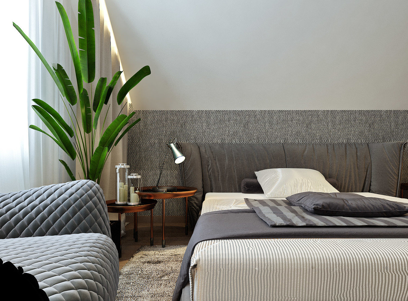 Фотография: Спальня в стиле Современный, Дом, Проект недели, Дом и дача, мансарда в загородном доме, Самара, Ольга Агапонова, Artek Design Studio, ванная комната в мансарде, деревянная лестница, гардеробная с окном – фото на INMYROOM
