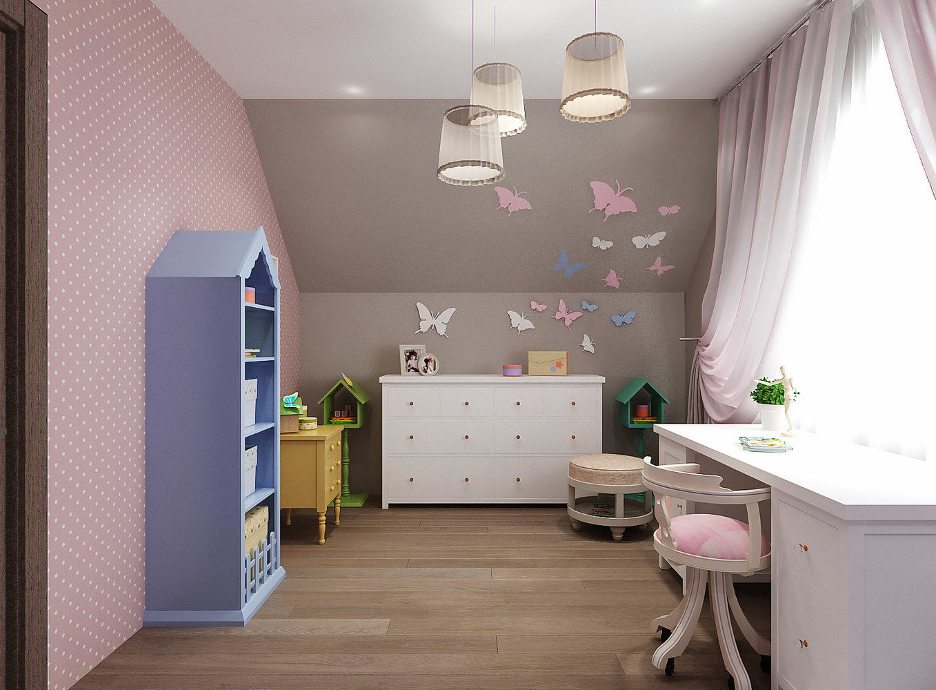 Фотография: Детская в стиле Скандинавский, Современный, Дом, Проект недели, Дом и дача, мансарда в загородном доме, Самара, Ольга Агапонова, Artek Design Studio, ванная комната в мансарде, деревянная лестница, гардеробная с окном – фото на INMYROOM