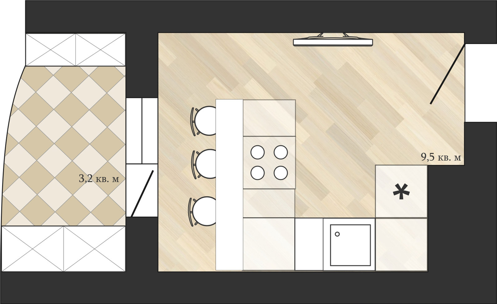 Фотография: Планировки в стиле , Кухня и столовая, Перепланировка, И-155МК, Анастасия Киселева, Максим Джураев – фото на INMYROOM