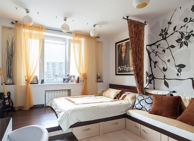 Фотография: Спальня в стиле Современный, Гостиная, Малогабаритная квартира, Квартира, Дом, Планировки, Перепланировка – фото на INMYROOM