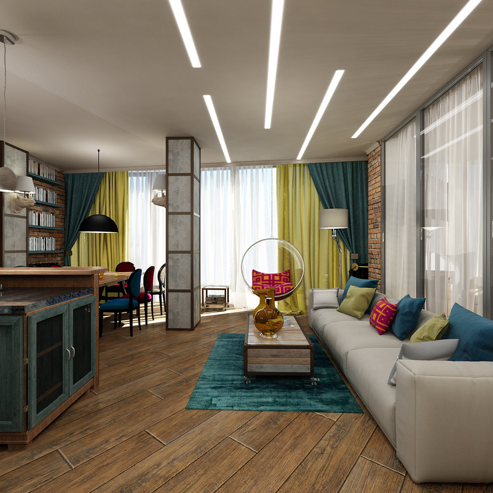 Фотография: Гостиная в стиле Эклектика, Лофт, Квартира, Проект недели, Челябинск, новостройка, Анна Серскова, ЙОХ architects, Монолитный дом, 2 комнаты, 60-90 метров – фото на INMYROOM