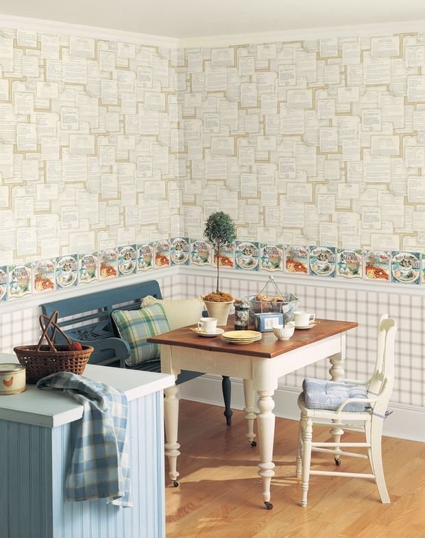 Оригинальные фото идеи комбинирования обоев на кухне4,0