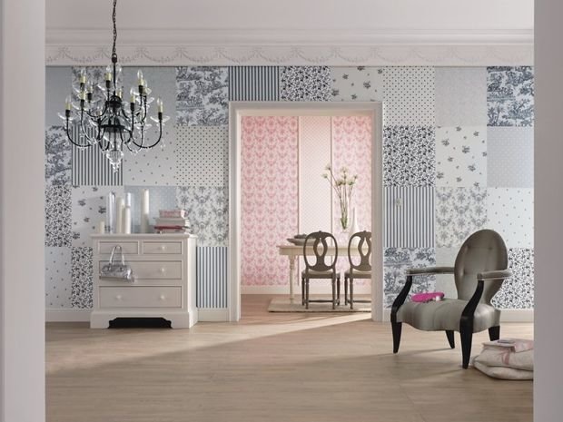Оригинальные фото идеи комбинирования обоев на кухнеГамма