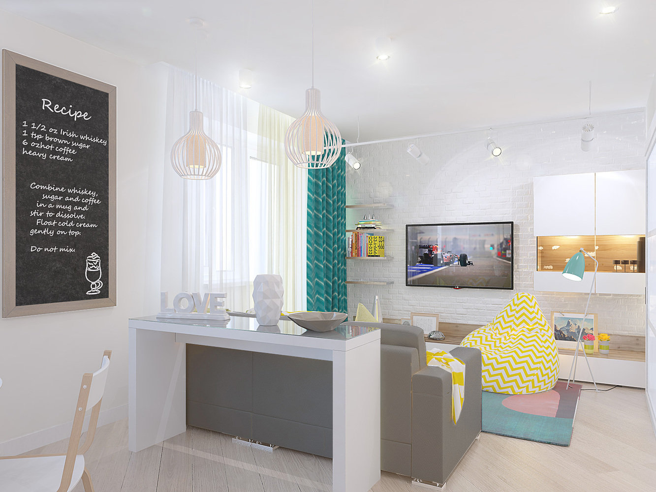 Фотография: Гостиная в стиле Скандинавский, Квартира, Проект недели, новостройка, Монолитный дом, 2 комнаты, 60-90 метров, Тюмень, Kaplun&Osipov – фото на INMYROOM