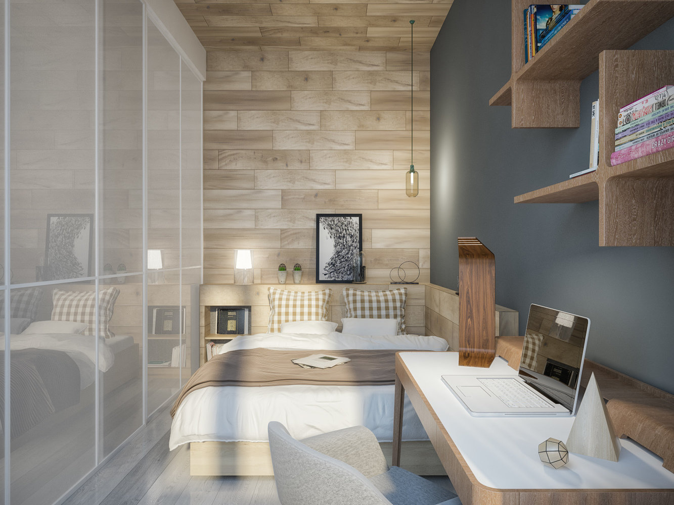 Фотография: Спальня в стиле Эко, Скандинавский, Современный, Квартира, Студия, Проект недели, Москва, Степан Бугаев, «Победа дизайна», новостройка, Монолитный дом, 40-60 метров – фото на INMYROOM