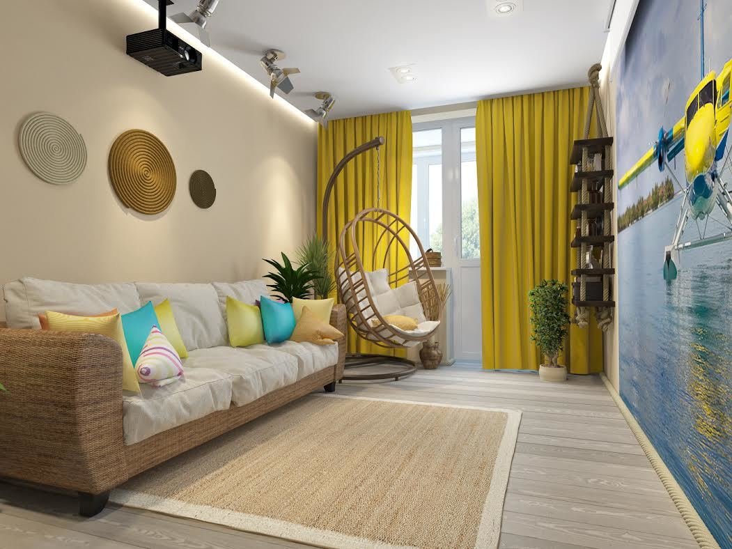 Фото из портфолио 4-х комнатная квартира с гостиной в светло-бежевых и нежно-голубых тонах – фотографии дизайна интерьеров на INMYROOM