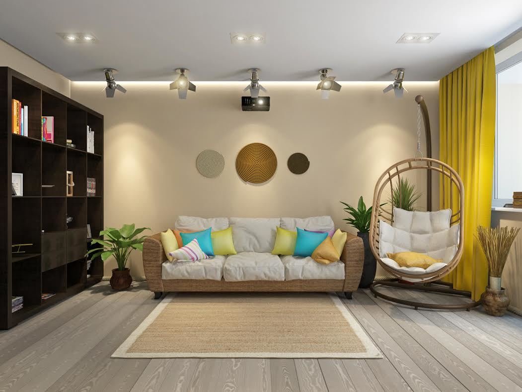 Фото из портфолио 4-х комнатная квартира с гостиной в светло-бежевых и нежно-голубых тонах – фотографии дизайна интерьеров на INMYROOM