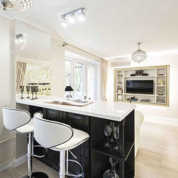 Фотография: Прихожая в стиле Скандинавский, Кухня и столовая, Гостиная, Декор интерьера, Квартира, Студия, Дом, барная стойка на кухне, кухня-гостиная с барной стойкой – фото на INMYROOM