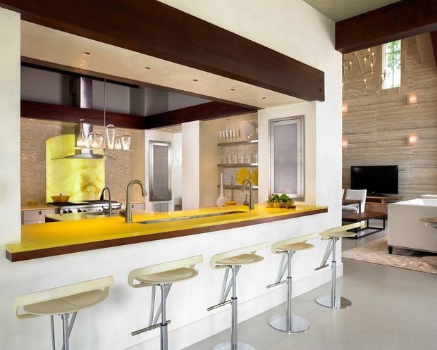 Фотография: Балкон в стиле Скандинавский, Кухня и столовая, Гостиная, Декор интерьера, Квартира, Студия, Дом, барная стойка на кухне, кухня-гостиная с барной стойкой – фото на INMYROOM