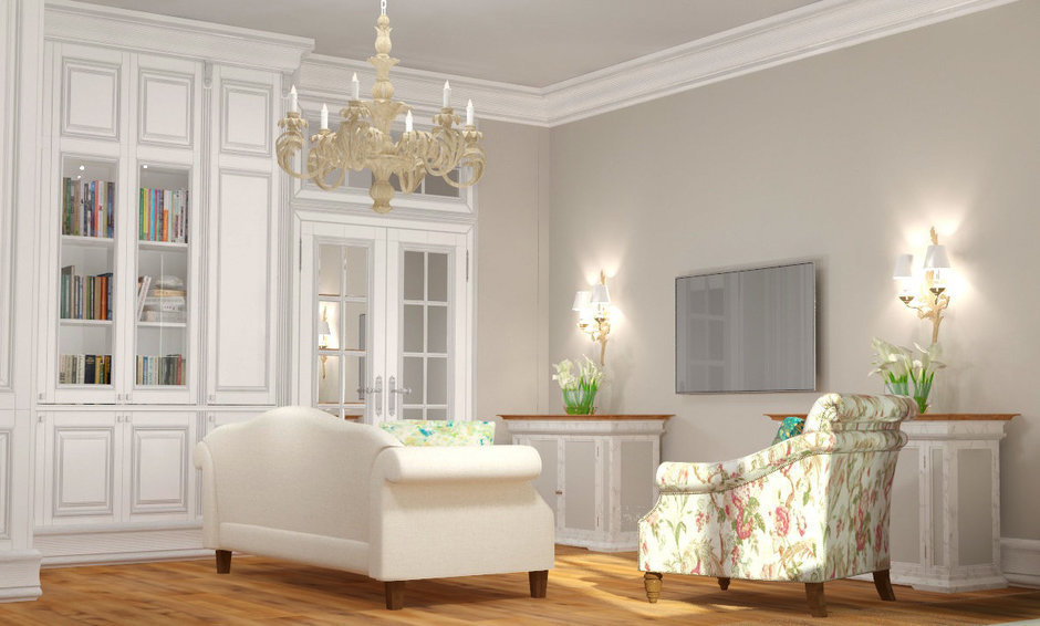 Фотография: Гостиная в стиле Прованс и Кантри, Классический, Квартира, Проект недели, Москва, Мария Наседкина, Илья Насонов, Nasonov DesignWerke, Сталинка – фото на INMYROOM