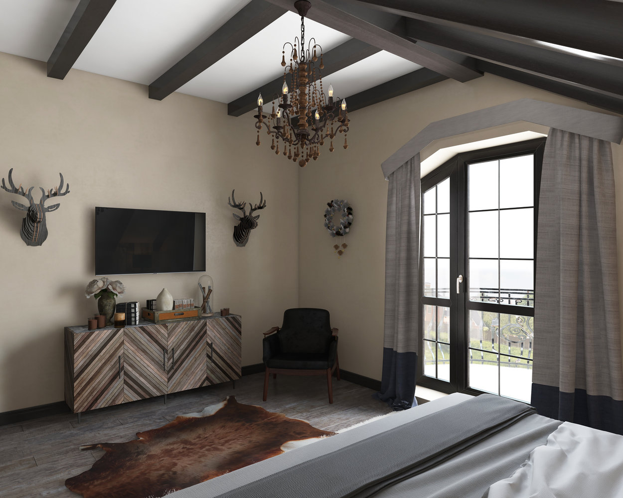 Фотография: Спальня в стиле Прованс и Кантри, Дом, Проект недели, Дом и дача, мансарда в загородном доме, Пермь, Юлия Чурина, необычный камин, декоративные балки – фото на INMYROOM