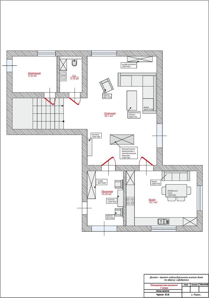 План расстановки мебели, 1 этаж