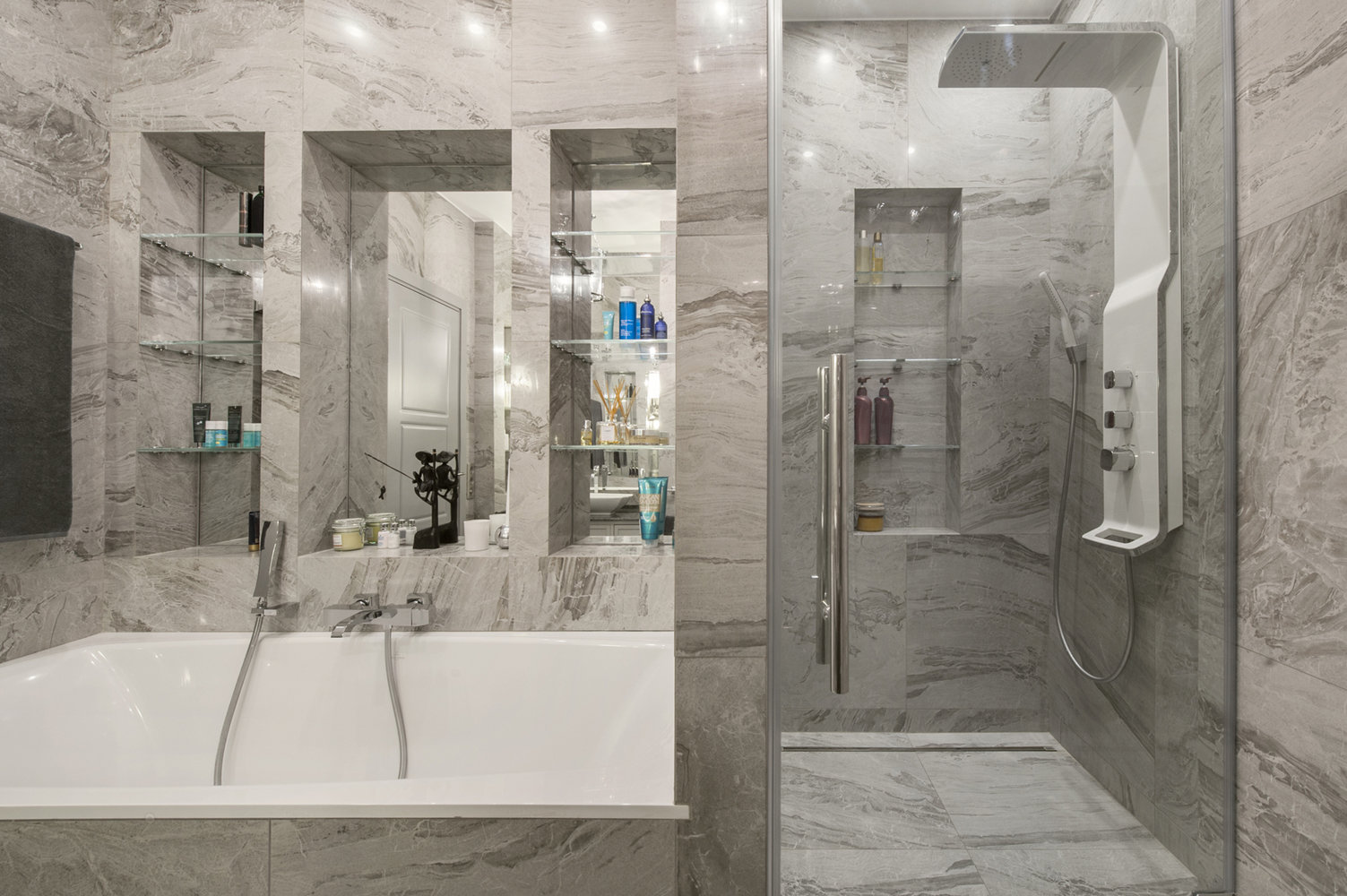 Фотография: Ванная в стиле Современный, Эклектика, Квартира, Проект недели, Москва, новостройка, Ольга Мелекесцева, Надежда Каппер, Монолитный дом, 2 комнаты, Более 90 метров, ЖК «Пырьева 9» – фото на INMYROOM