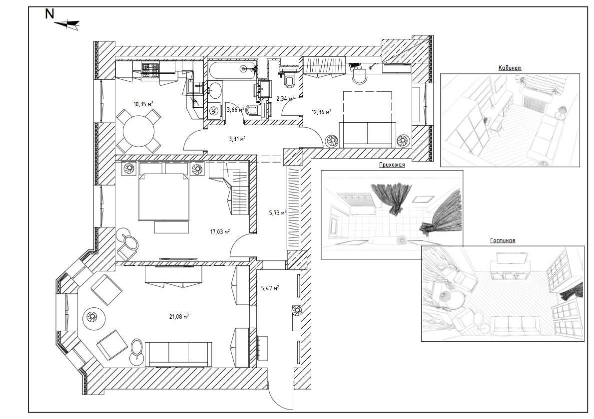 Трешка в старом кирпичном доме: проект в Москве4,7