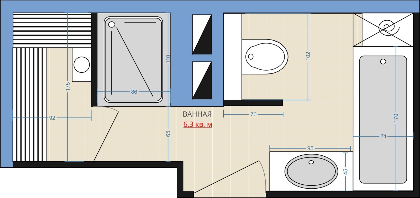 Фотография: Планировки в стиле , Ванная, Перепланировка, Анастасия Киселева, Максим Джураев, И-155Б, Панельный дом – фото на INMYROOM