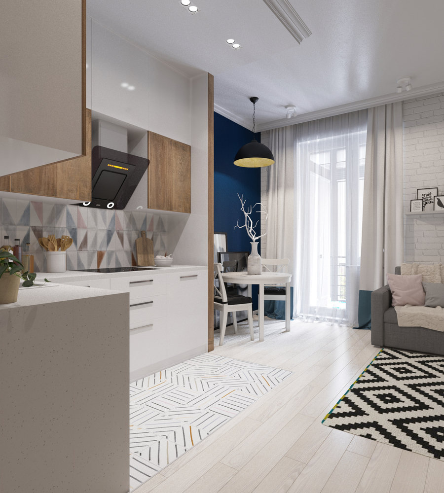 Фотография: Кухня и столовая в стиле Скандинавский, Квартира, Студия, Проект недели, Сургут, новостройка, кухня в нише, Диляра Сайфутдинова, Монолитный дом, 40-60 метров – фото на INMYROOM