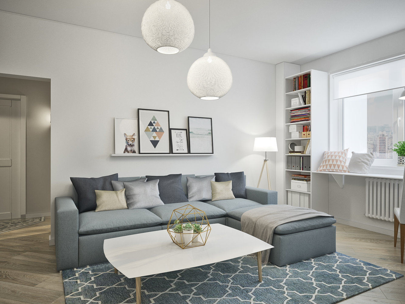 Фотография: Гостиная в стиле Скандинавский, Квартира, Проект недели, Победа Дизайна, новостройка, трешка – фото на INMYROOM
