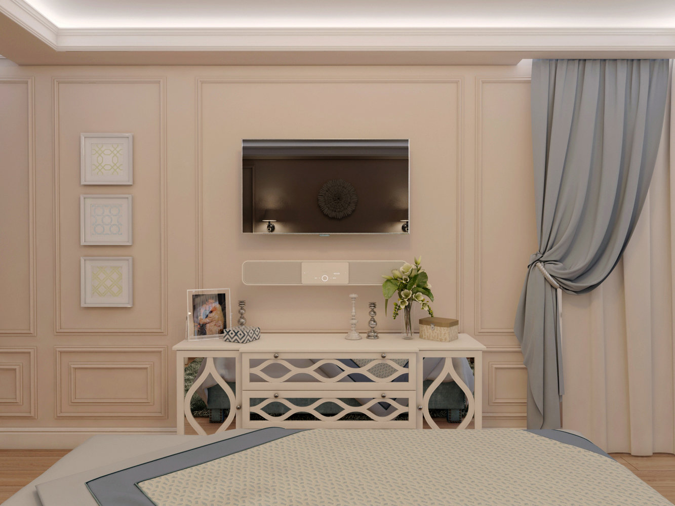 Фотография: Спальня в стиле Классический, Современный, Квартира, Проект недели, Красногорск, Московская область, Яна Волкова, Юрий Волков, Студия Волковых, новостройка, Монолитный дом, 3 комнаты, Более 90 метров – фото на INMYROOM