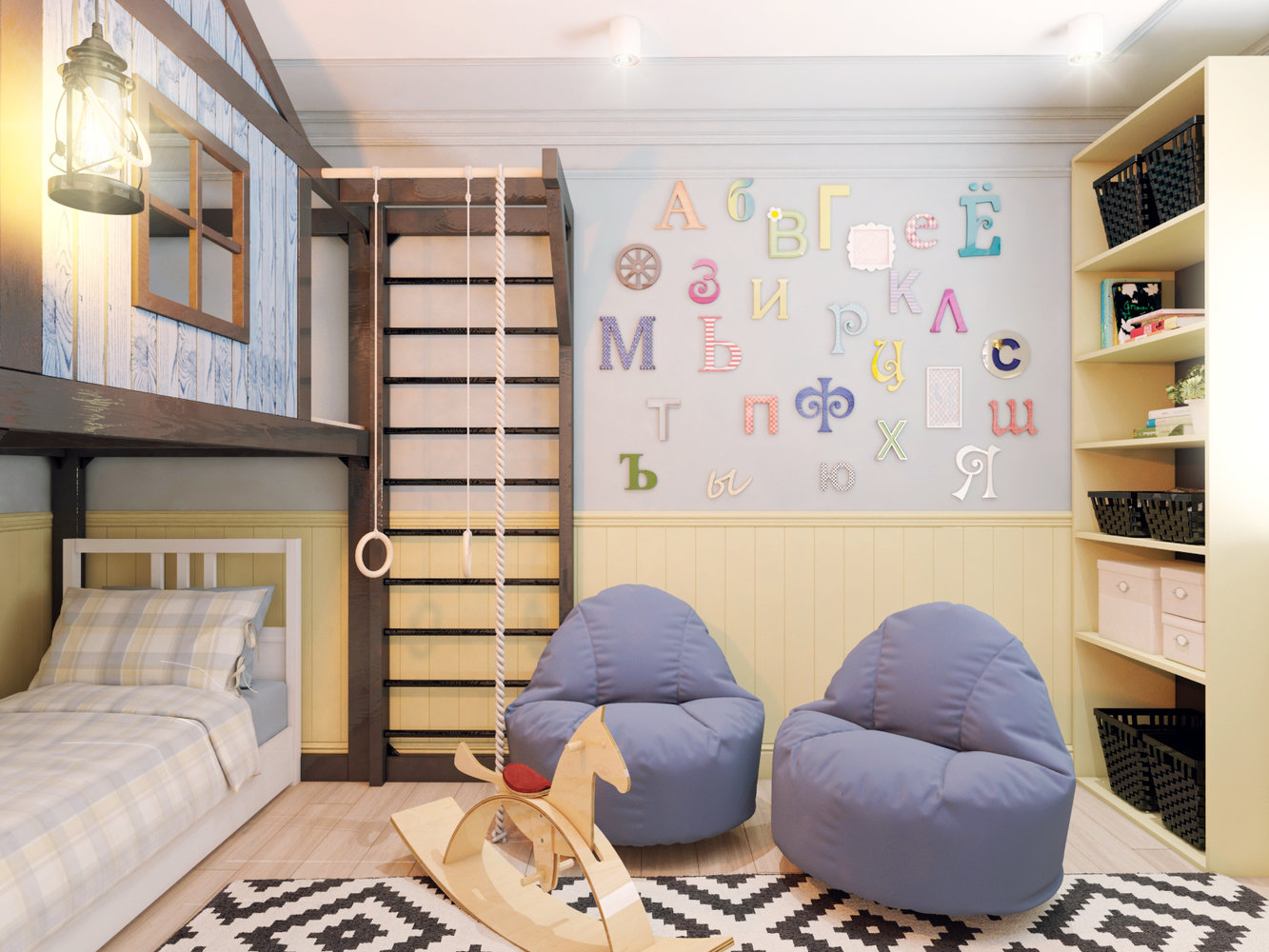 Фотография: Детская в стиле Скандинавский, Современный, Квартира, Проект недели, Красногорск, Московская область, Яна Волкова, Юрий Волков, Студия Волковых, новостройка, Монолитный дом, 3 комнаты, Более 90 метров – фото на INMYROOM