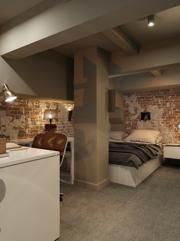 Фотография: Спальня в стиле Лофт, Квартира, Студия, Проект недели, Москва, Кирпичный дом, Монолитный дом, Татьяна Сивохина, Ригель групп, до 40 метров – фото на INMYROOM
