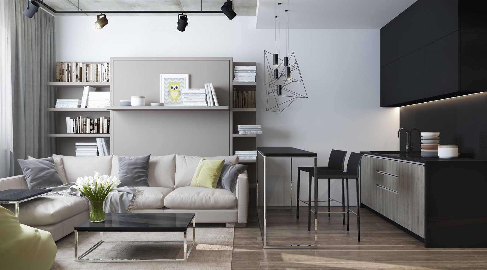 Фотография: Гостиная в стиле Минимализм, Лофт, Малогабаритная квартира, Квартира, Студия, Проект недели, Москва, Елена Потемкина, новостройка, Монолитный дом, до 40 метров – фото на INMYROOM