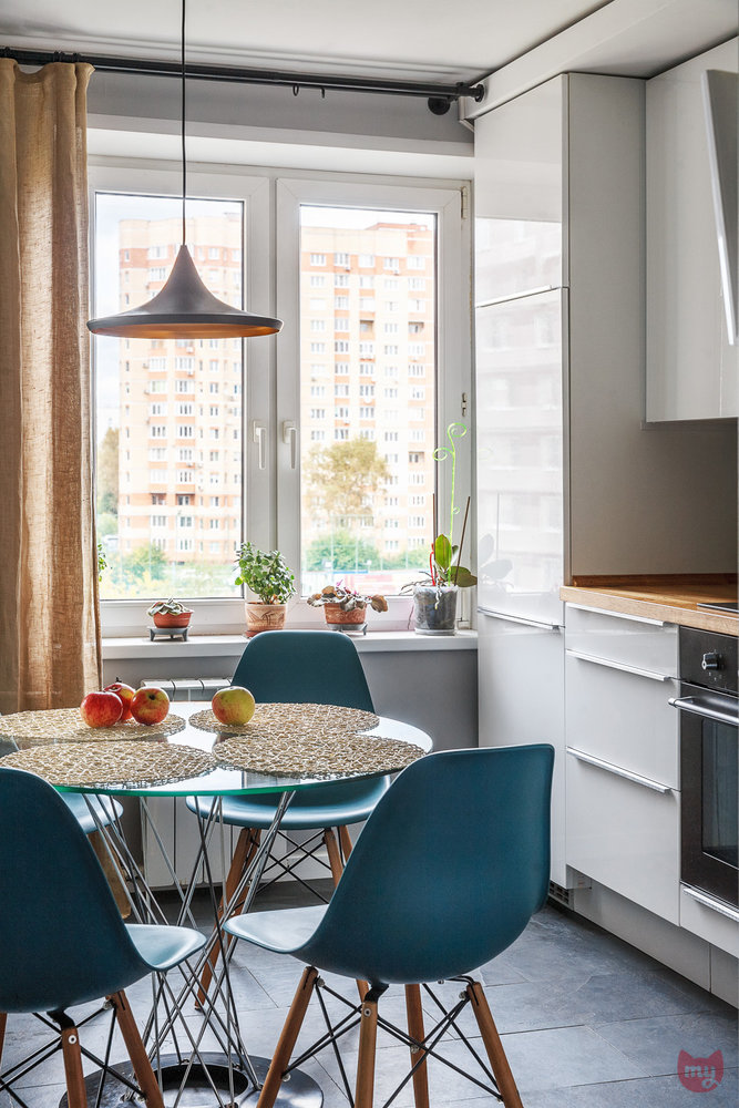 Фотография: Кухня и столовая в стиле Скандинавский, Современный, Малогабаритная квартира, Квартира, Проект недели, Павел Герасимов, Geometrium, экономия, Электросталь – фото на INMYROOM
