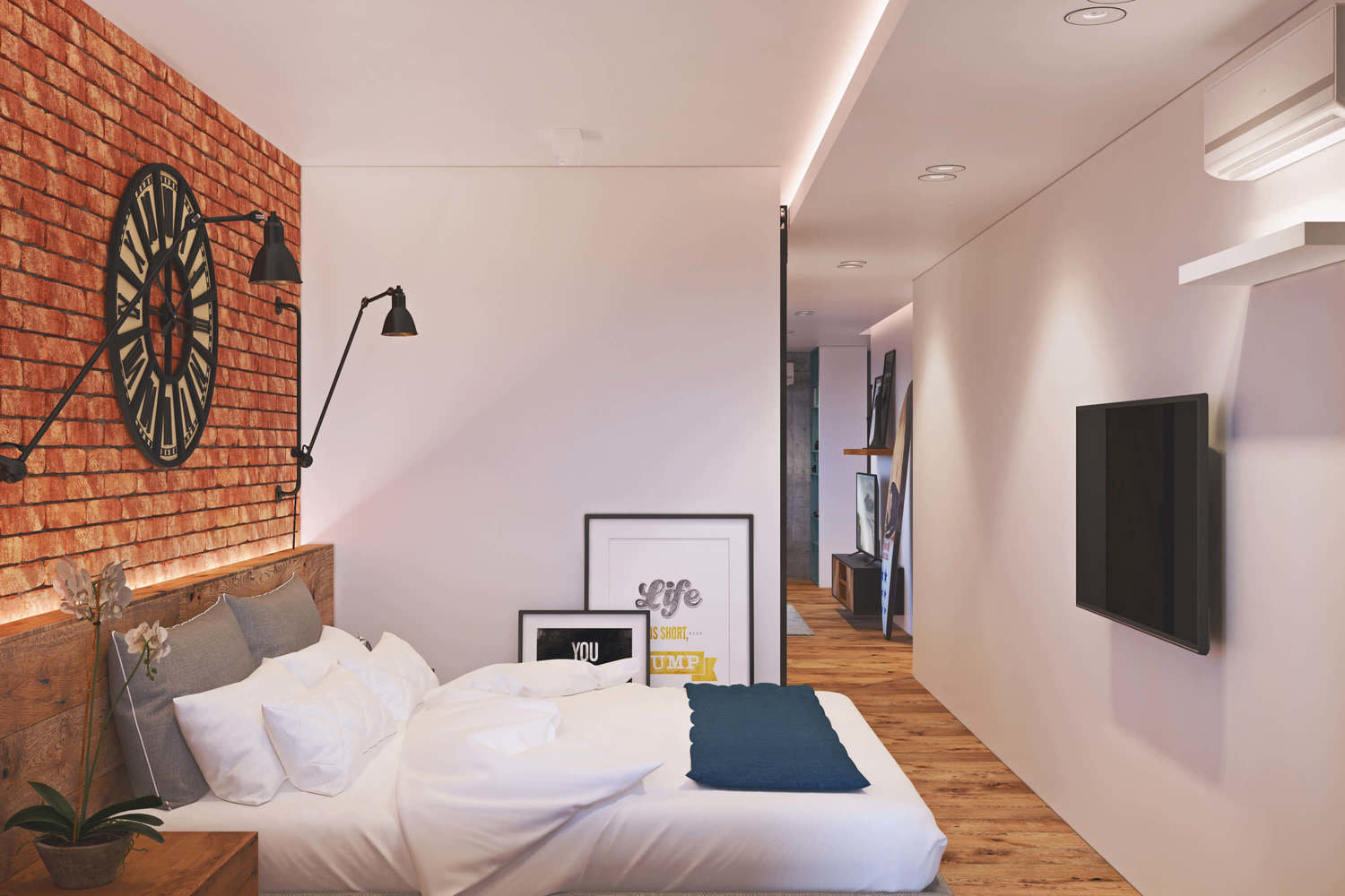 Фотография: Спальня в стиле Лофт, Квартира, Проект недели, Одинцово, Geometrium, Московская область, Монолитный дом, 2 комнаты, 60-90 метров – фото на INMYROOM