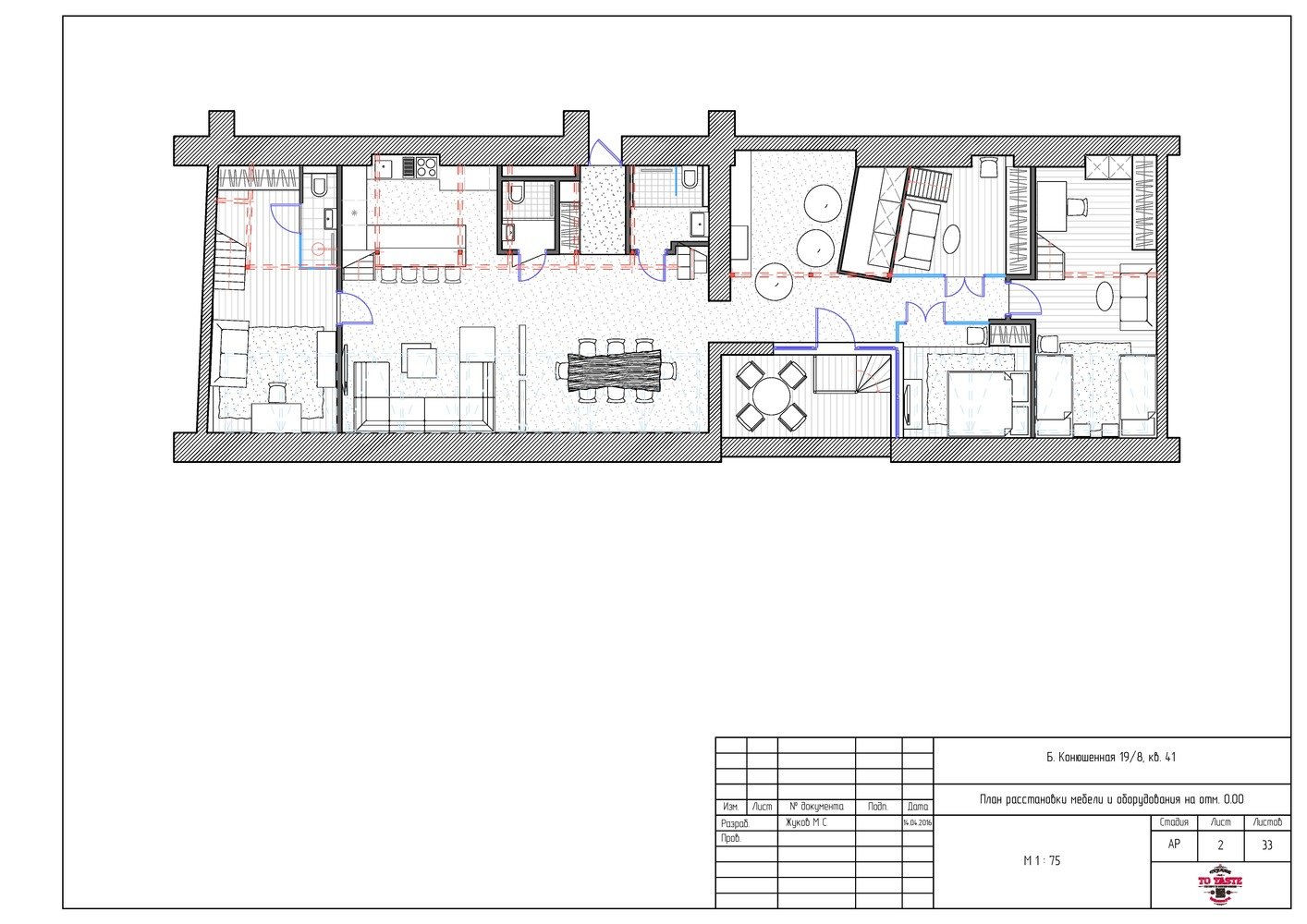 План с расстановкой мебели, 1 этаж