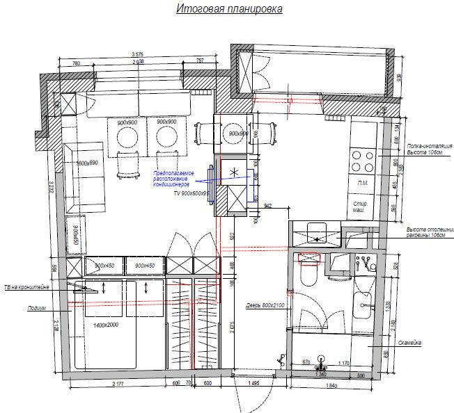 Студия со спальней в нише и рабочим столом в шкафуГамма