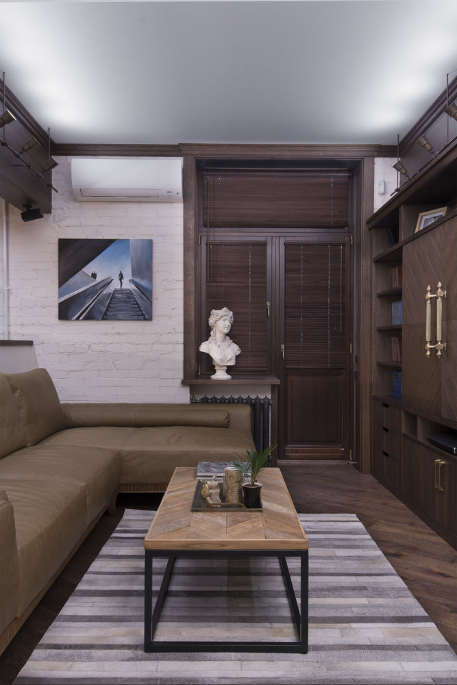 Фотография: Гостиная в стиле Современный, Лофт, Квартира, Проект недели, Москва, Дина Александрова, Сталинка, Анна Тимофеева, 3 комнаты, 60-90 метров – фото на INMYROOM