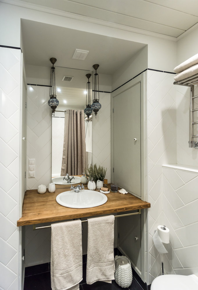 Фотография: Ванная в стиле Скандинавский, Прованс и Кантри, Квартира, Проект недели, Московская область, Московский, Монолитный дом, Юлия Латыпова, 1 комната, до 40 метров – фото на INMYROOM