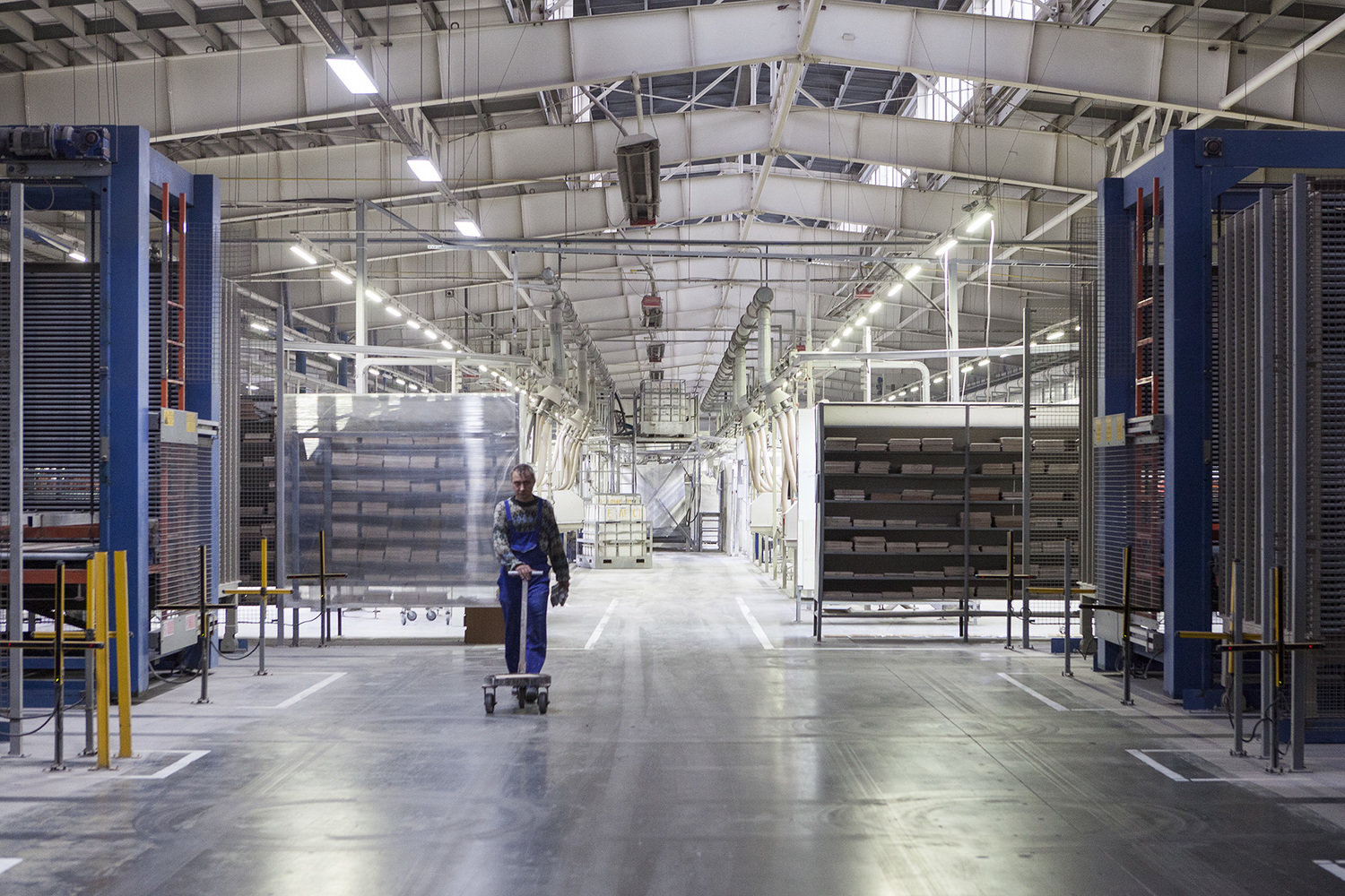 Зона хранения обожженной плитки. Завод Kerama Marazzi в Орле