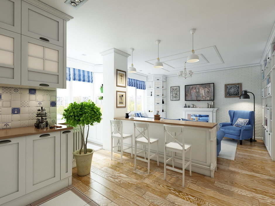 Фотография: Кухня и столовая в стиле Прованс и Кантри, Современный, Квартира, Студия, Проект недели, Одинцово, Московская область, новостройка, Алена Ливиненко – фото на INMYROOM