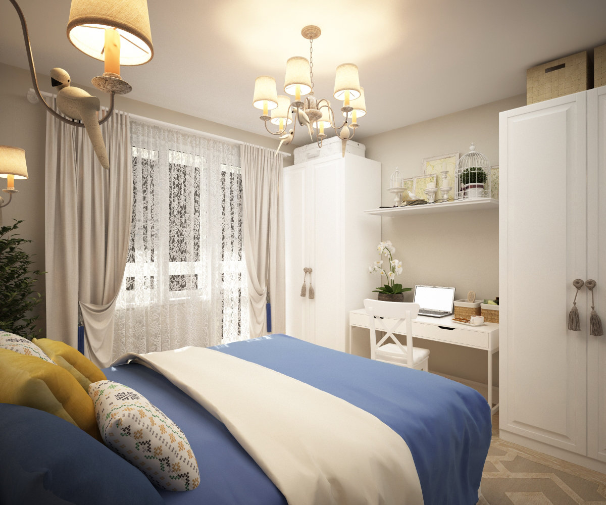 Фотография: Спальня в стиле Прованс и Кантри, Современный, Квартира, Проект недели, Московская область, Балашиха, новостройка, Монолитный дом, El Trento Design & Interior, 2 комнаты, 40-60 метров – фото на INMYROOM