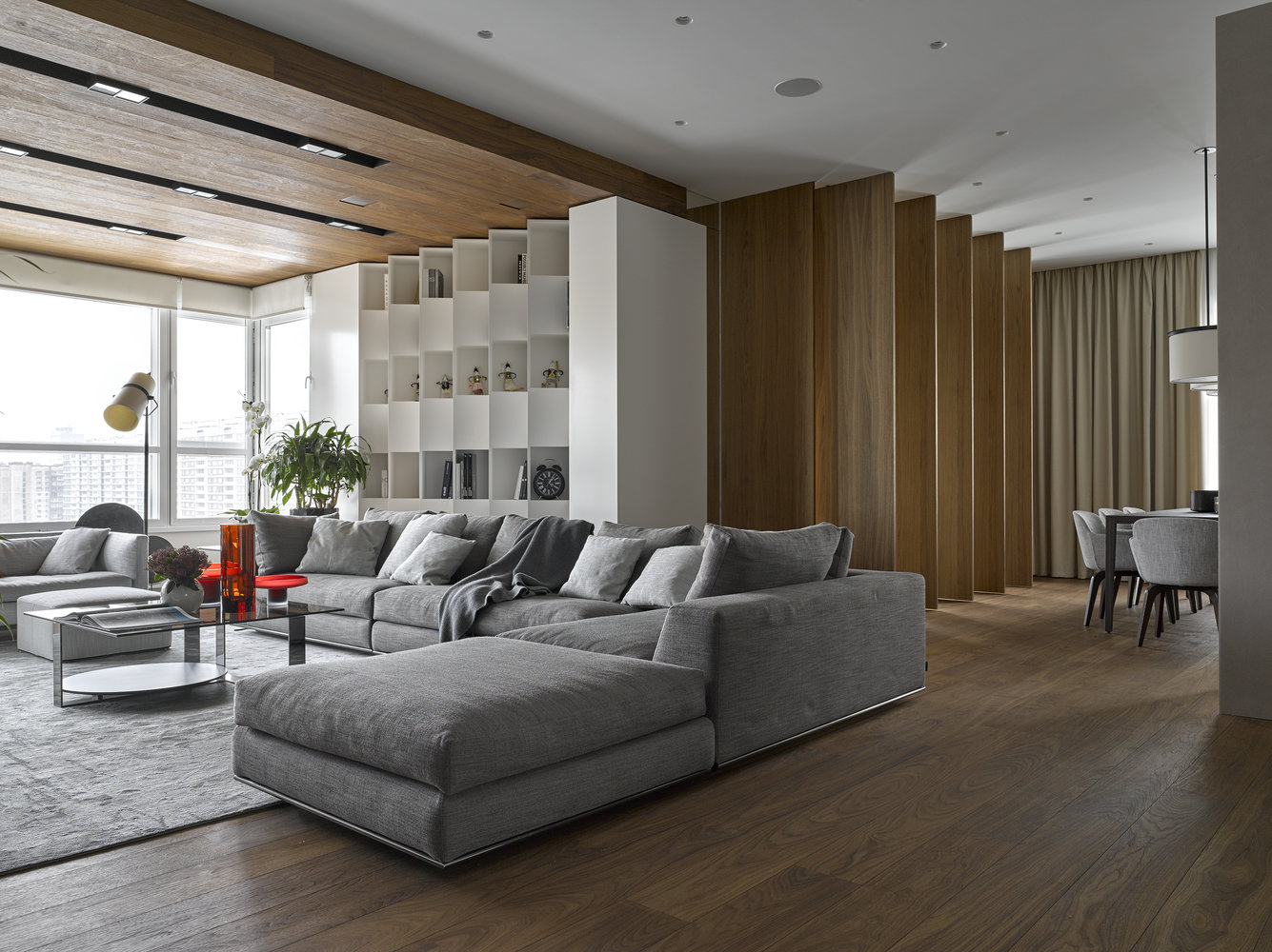 Фотография: Гостиная в стиле Современный, Квартира, Москва, новостройка, Монолитный дом, Александра Федорова, Бюро Александры Федоровой, 4 и больше, Более 90 метров, #эксклюзивныепроекты – фото на INMYROOM