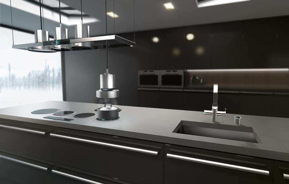 Индукционная плита Unito Cooker с вытяжкой, которая спускается к кастрюльке