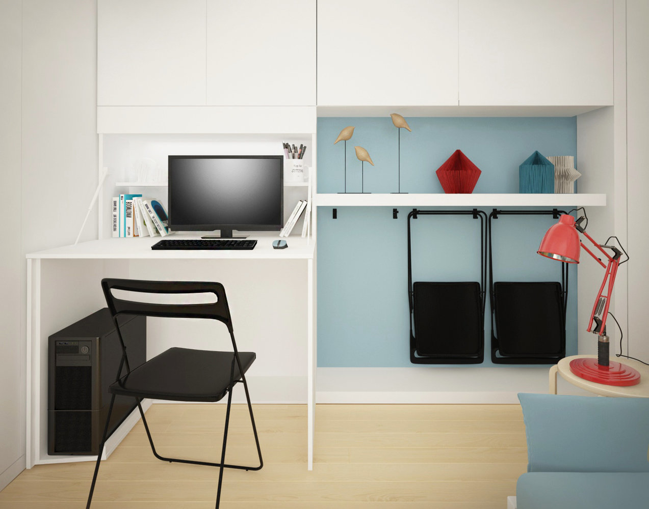Фотография: Кабинет в стиле Минимализм, Малогабаритная квартира, Квартира, Highland House, Проект недели, Москва, Хрущевка, 1 комната, до 40 метров, Екатерина Матвеева – фото на INMYROOM