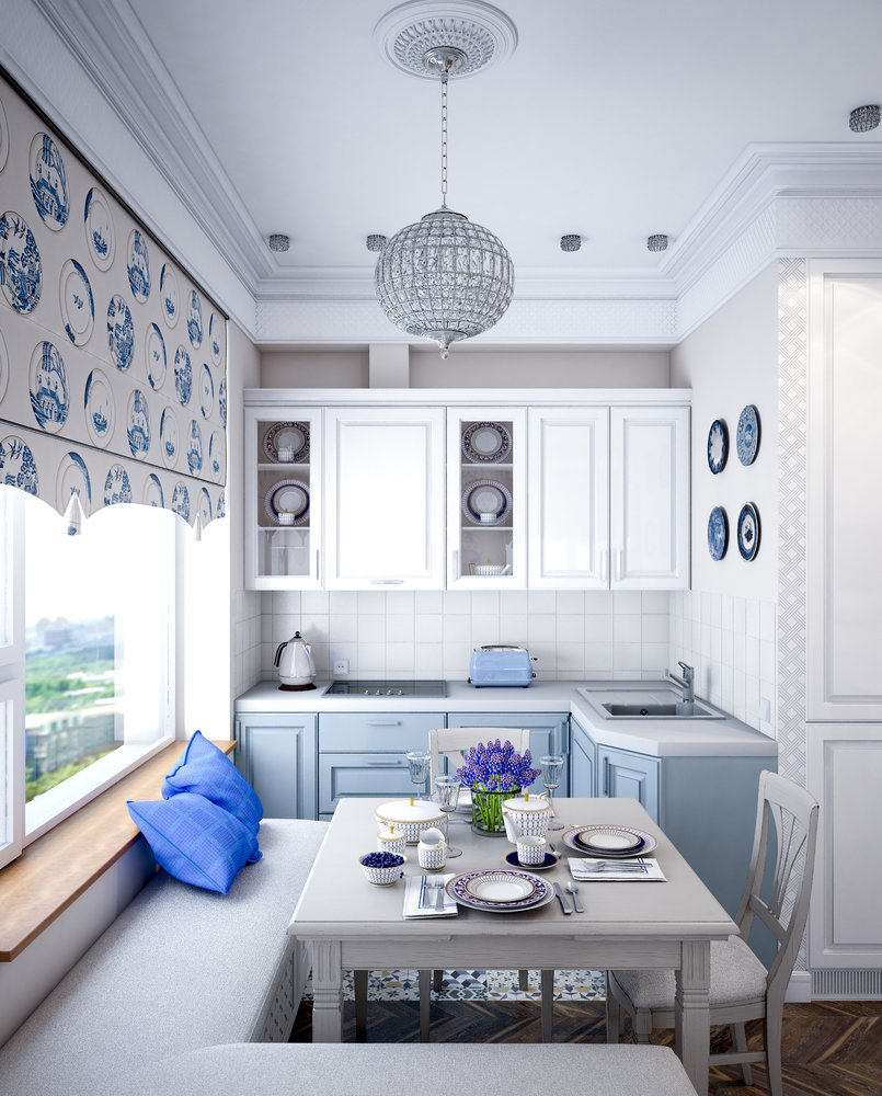 Фотография: Кухня и столовая в стиле Классический, Проект недели, Синий, Марина Саркисян, Монолитный дом, 2 комнаты, 40-60 метров – фото на INMYROOM