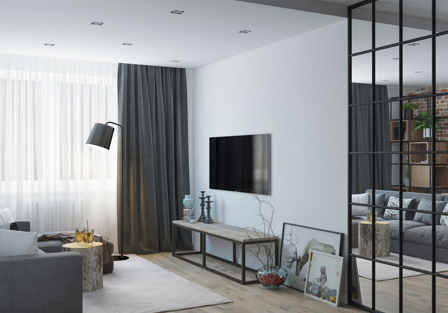 Фотография: Гостиная в стиле Скандинавский, Лофт, Современный, Квартира, Проект недели, Новая Москва, OM Design, Монолитный дом, 3 комнаты, 60-90 метров – фото на INMYROOM