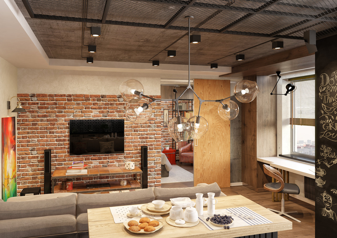 Фотография: Гостиная в стиле Лофт, Квартира, Проект недели, Москва, Ольга Райская, Монолитный дом, 2 комнаты, 60-90 метров – фото на INMYROOM
