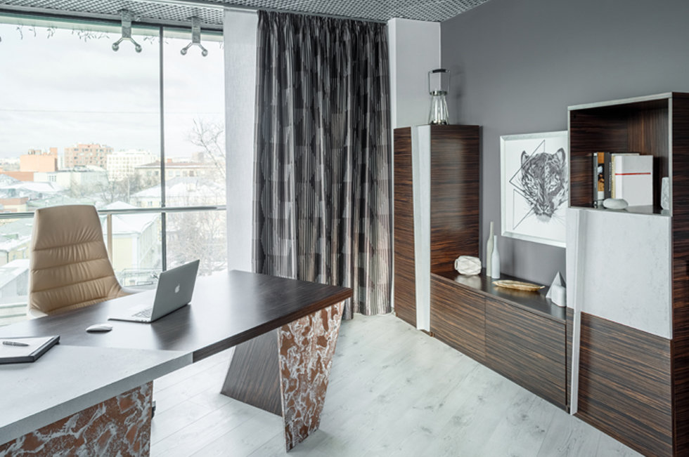 Фото из портфолио Дизайн кабинета: бетон, эбеновое дерево и шикарный вид из окна – фотографии дизайна интерьеров на INMYROOM