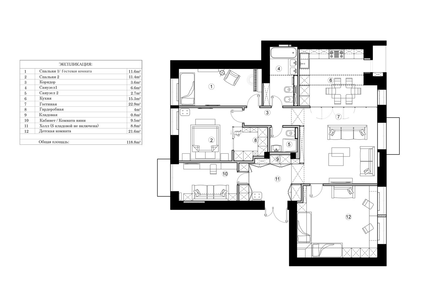 Фотография: Планировки в стиле , Квартира, Проект недели, Сталинка, 4 и больше, Более 90 метров, Москав, Елизавета Хлебникова, Алевтина Бутузова, Soul Concrete – фото на INMYROOM