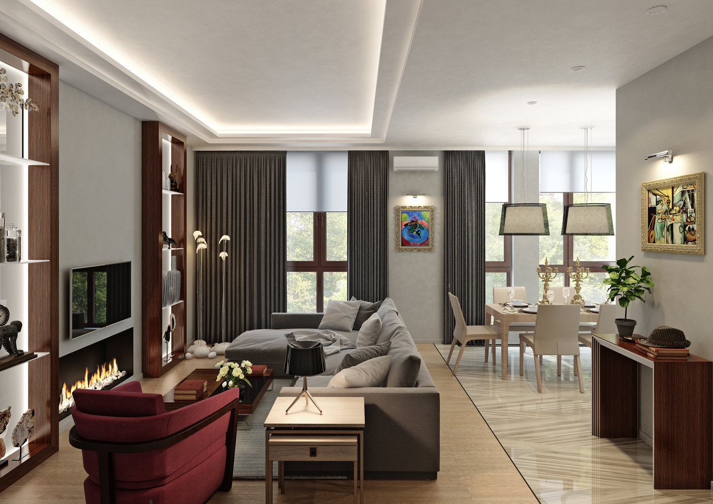 Фотография: Гостиная в стиле Современный, Квартира, Проект недели, Юлия Соловьева, Новогорск, 2 комнаты, 60-90 метров, ЖК «Олимпийская деревня Новогорск. Курорт». – фото на INMYROOM