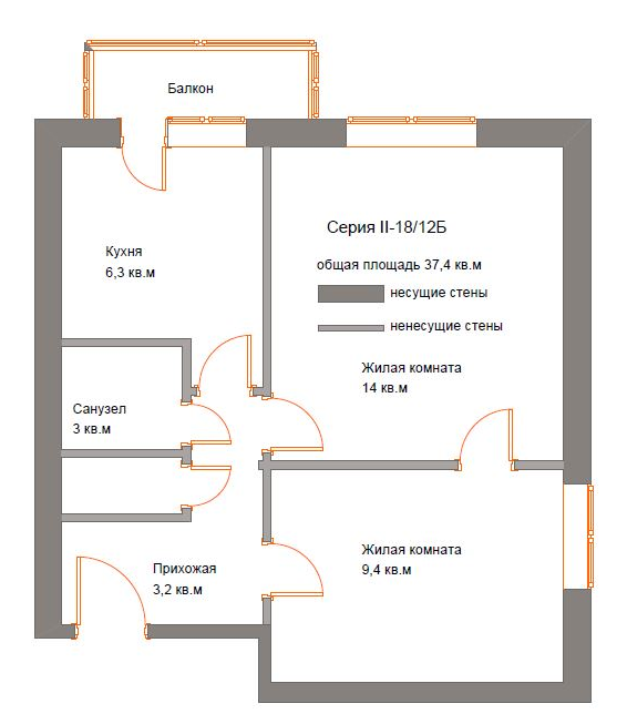 Перепланировка двушки в блочном доме: 3 варианта3,7